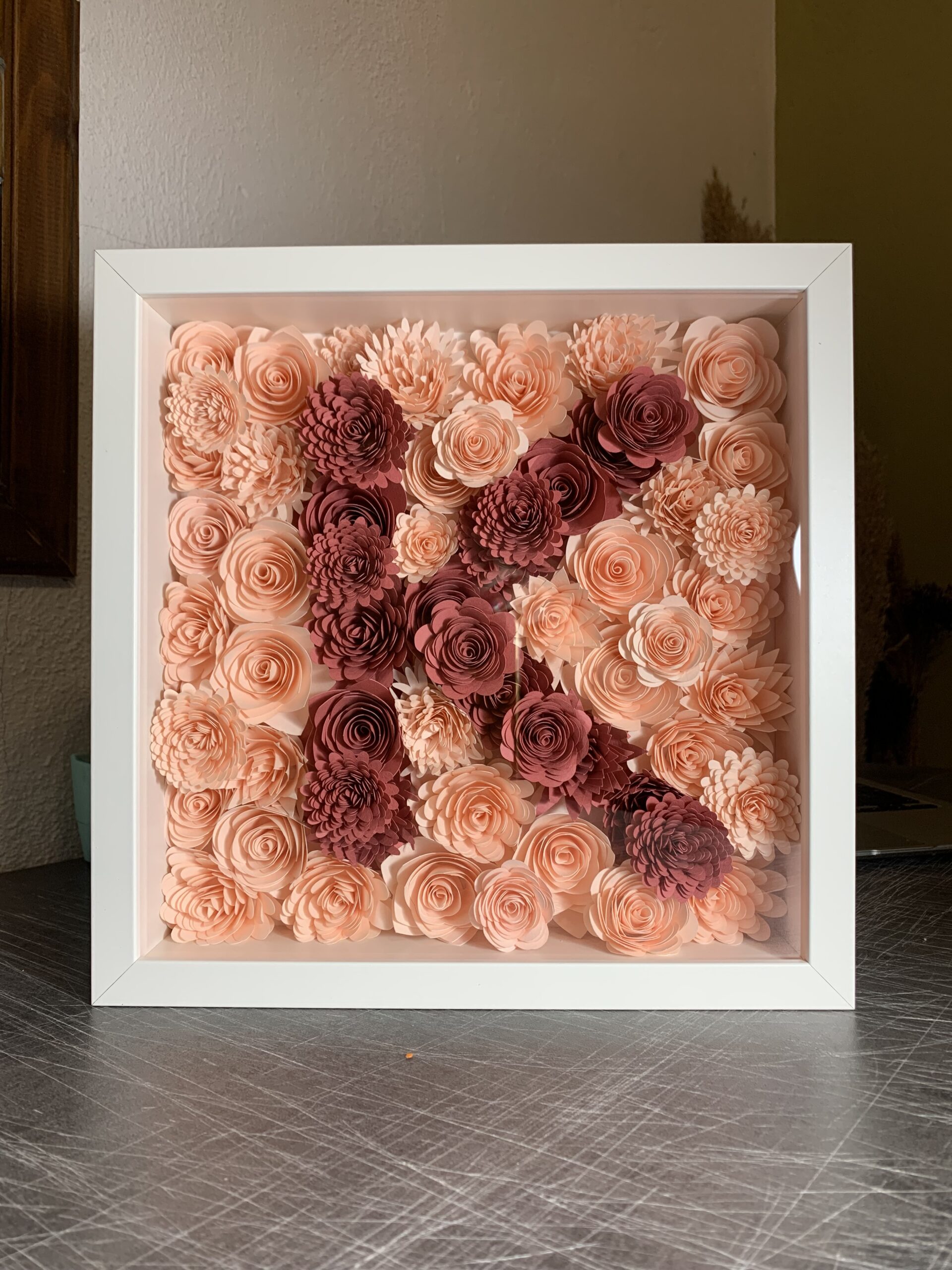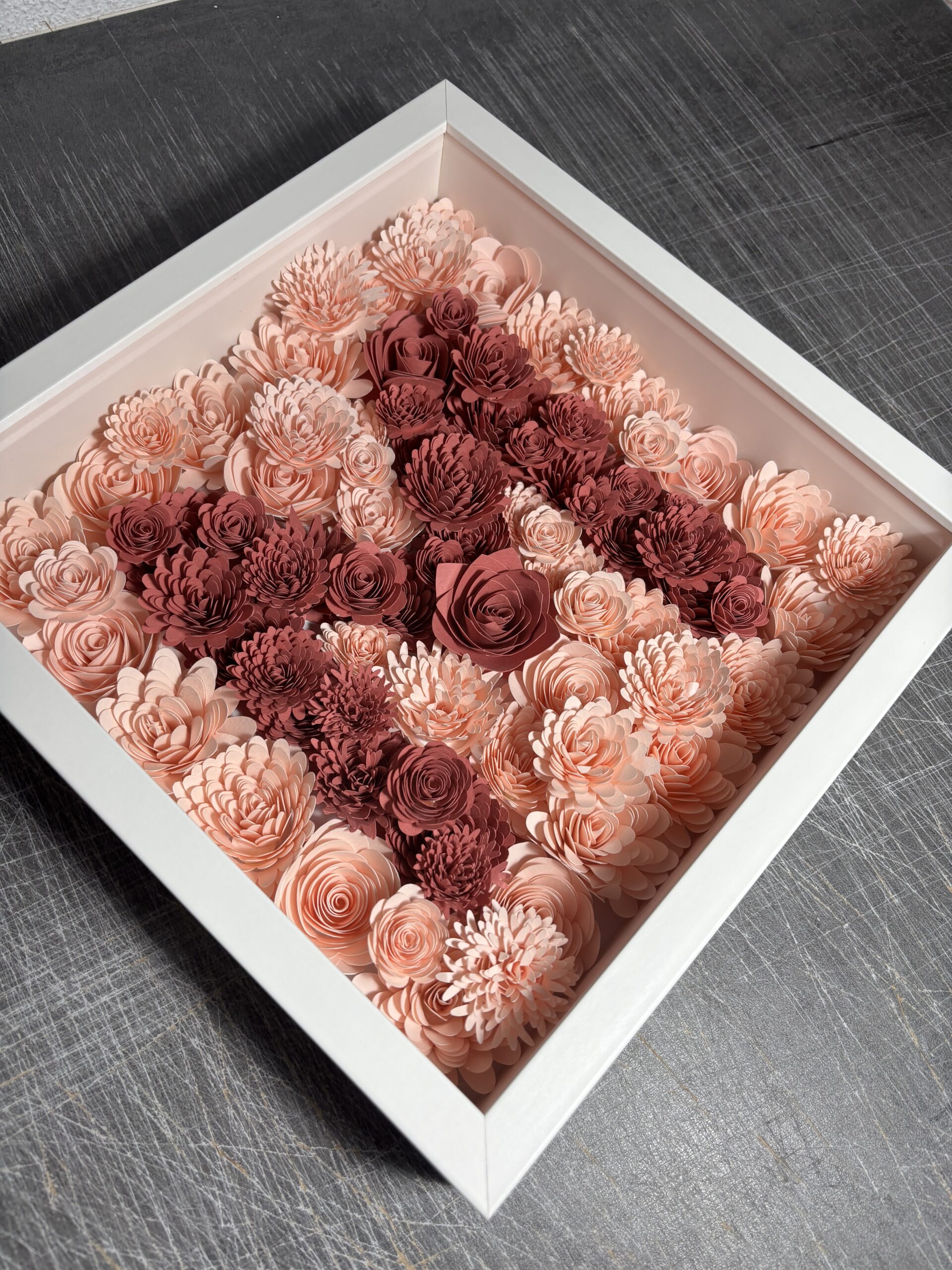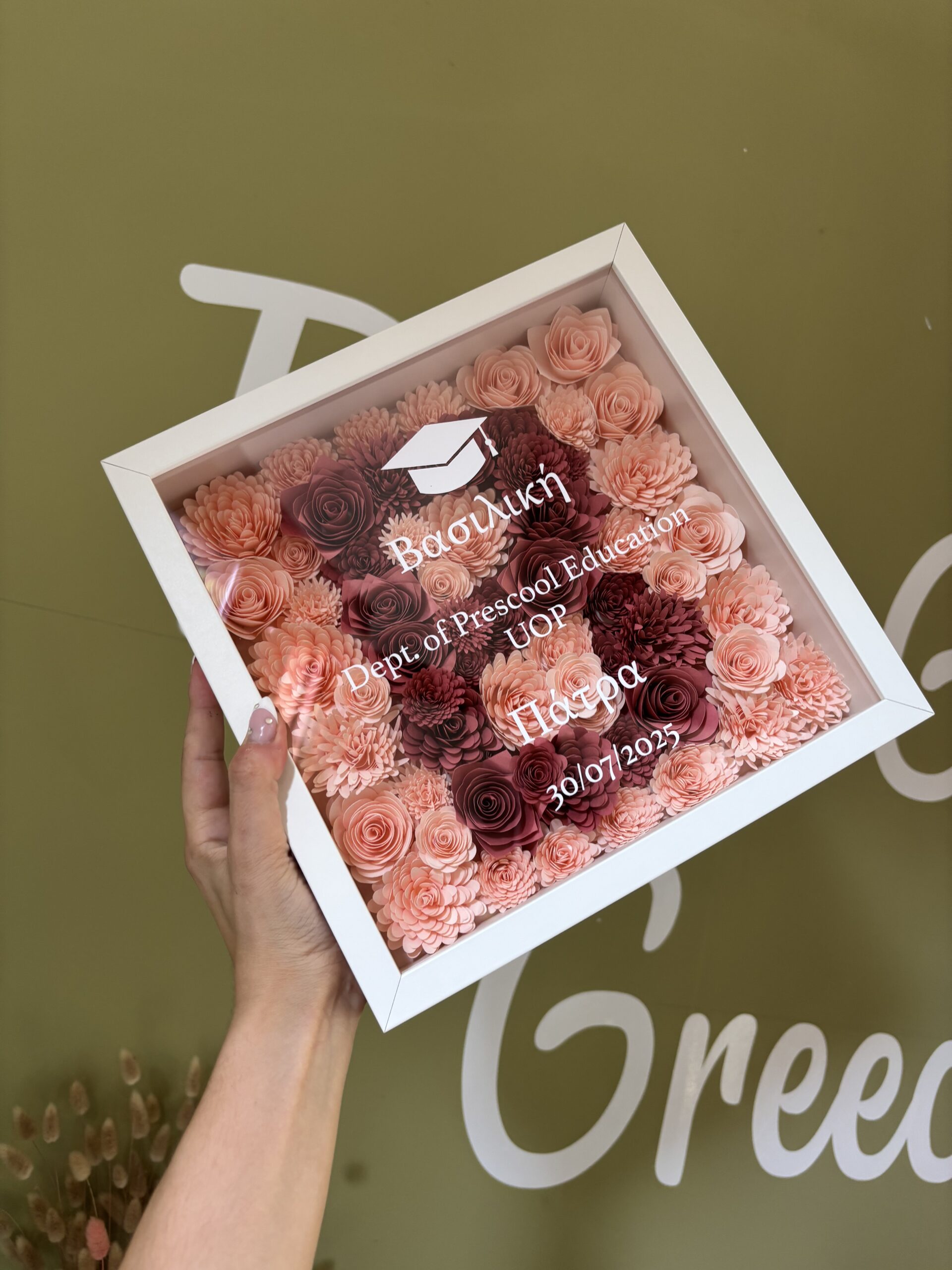 Tρισδιάστατο καδράκι, με εσωτερικό μονόγραμμα απο λουλούδια! Το κάδρο είναι επιτραπέζιο και επιτοίχιο. Ένα ιδιαίτερο προσωποποιημένο δώρο για όλες τις περιστάσεις.