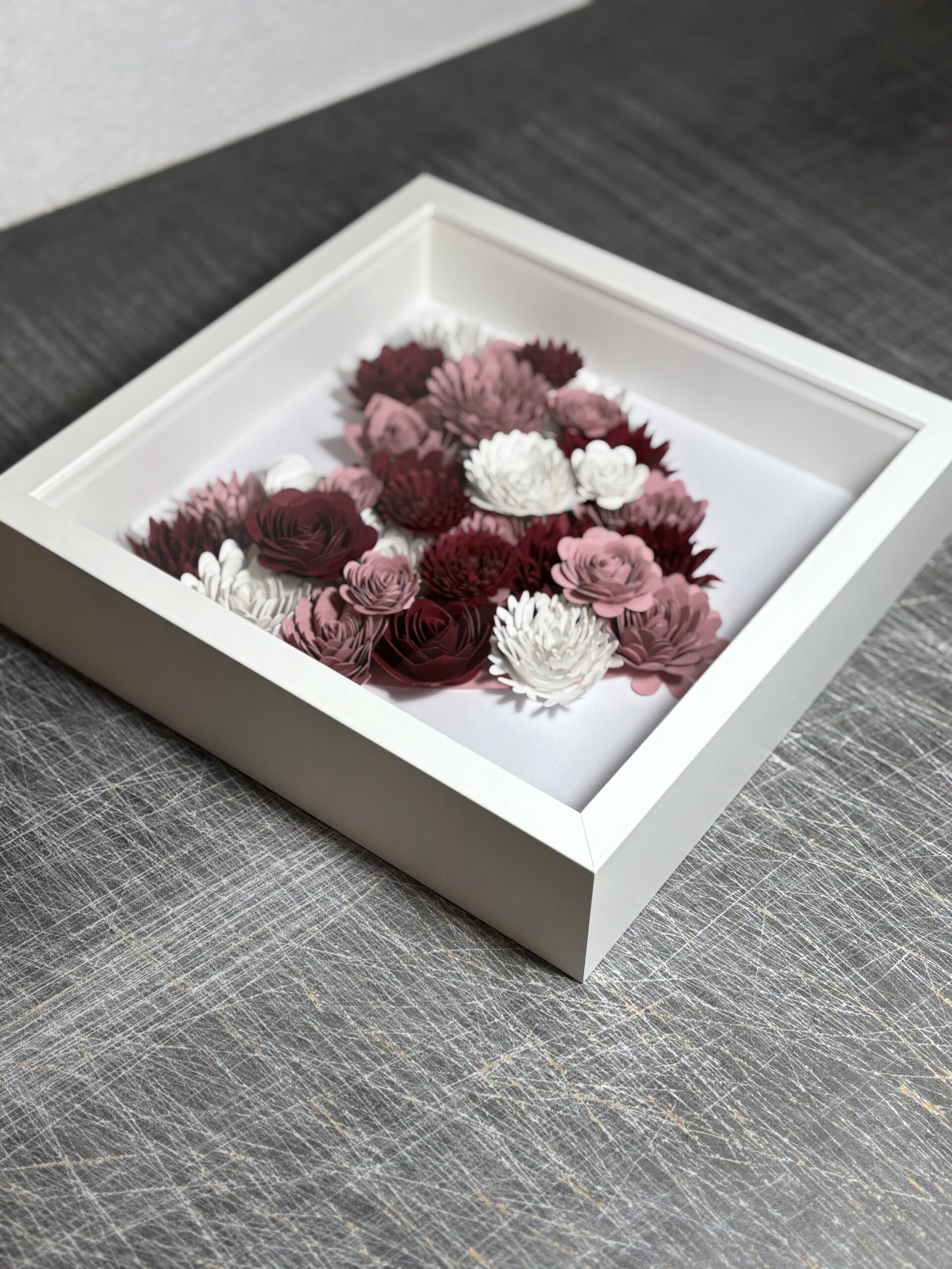Tρισδιάστατο καδράκι, με λουλούδια απο άριστης ποιότητας σκληρό χαρτόνι. Το κάδρο είναι επιτραπέζιο και επιτοίχιο. Ένα ιδιαίτερο προσωποποιημένο δώρο για όλες τις περιστάσεις.